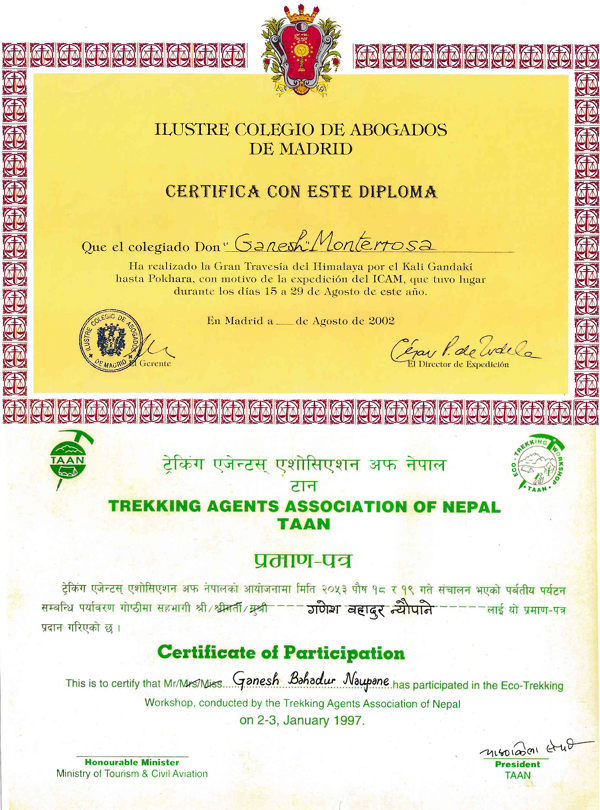 I successfully completed trekking guide course in 1983 organized by His Majesty Government Ministry of Tourism, Hotel management & Tourism training center. Then in 1987, I also successfully completed Mountain climbing guide course from Mountain school, Manang run by Nepal Mountaineering Association. I worked 6 yrs. with Yeti Trekking Pvt. Ltd., 3 yrs. with Mountain River adventure Trekking Pvt. Ltd. & 2 yrs. with Back & Track adventure Trekking Pvt. Ltd.