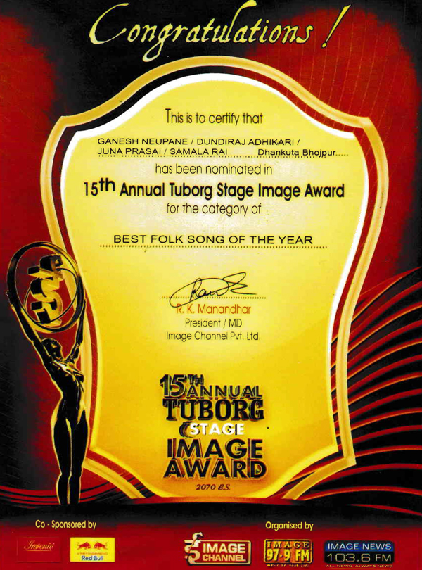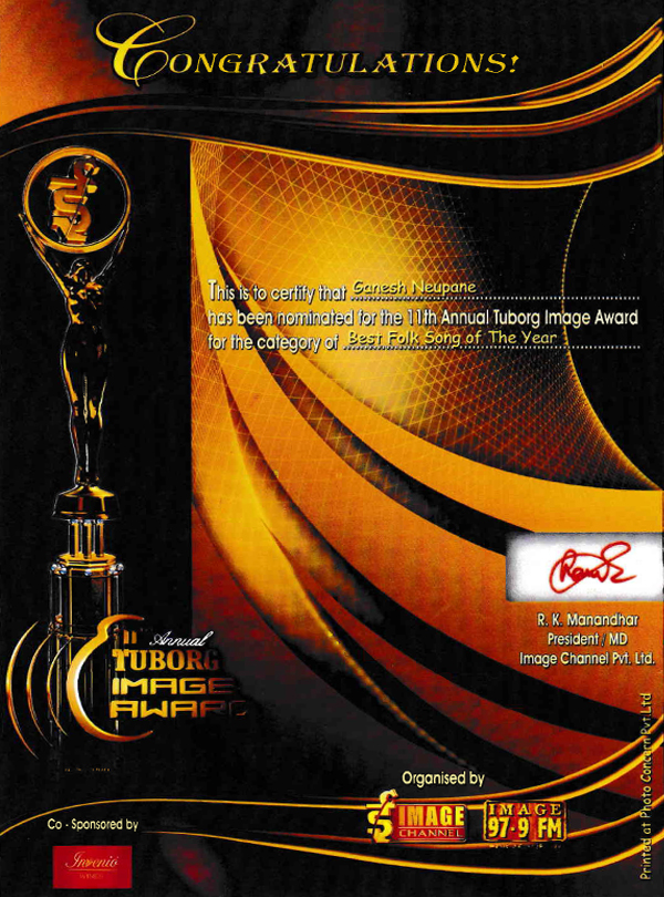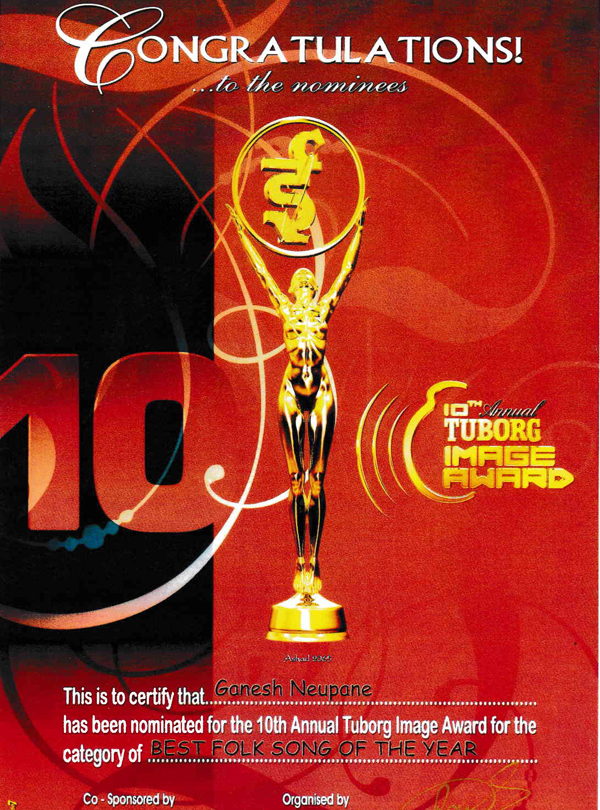 Receiving 10th National Musical Image Award Best Folk song of Year 2008 by top Nepali Singers