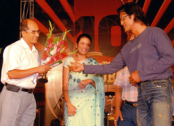 Receiving 10th National Musical Image Award Best Folk song of Year 2008 by Rajesh Hamal (Nepali top Filmy Actor)