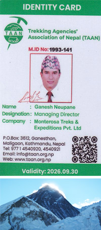 My name is Ganesh Bahadur Neupane, Managing Director of Monterosa Treks & Expedition Pvt. Ltd. I was born in 1962 A.D. in the village of Buddimorong, Dhankuta, Koshi Zone in Nepal which lies on the eastern slope of Mount Everest 8848m, Makalu 8463m & Kanchanjunga 8586m.